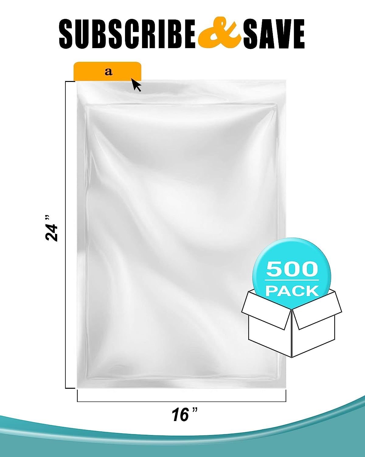 Pack of 500 Laminated Vacuum Pouches; Clear 16 x 22. Poly-Nylon Vacuum Food Bags 16x22. Thickness 3 mil Thick. Plastic Bags for Packing and Storing. P