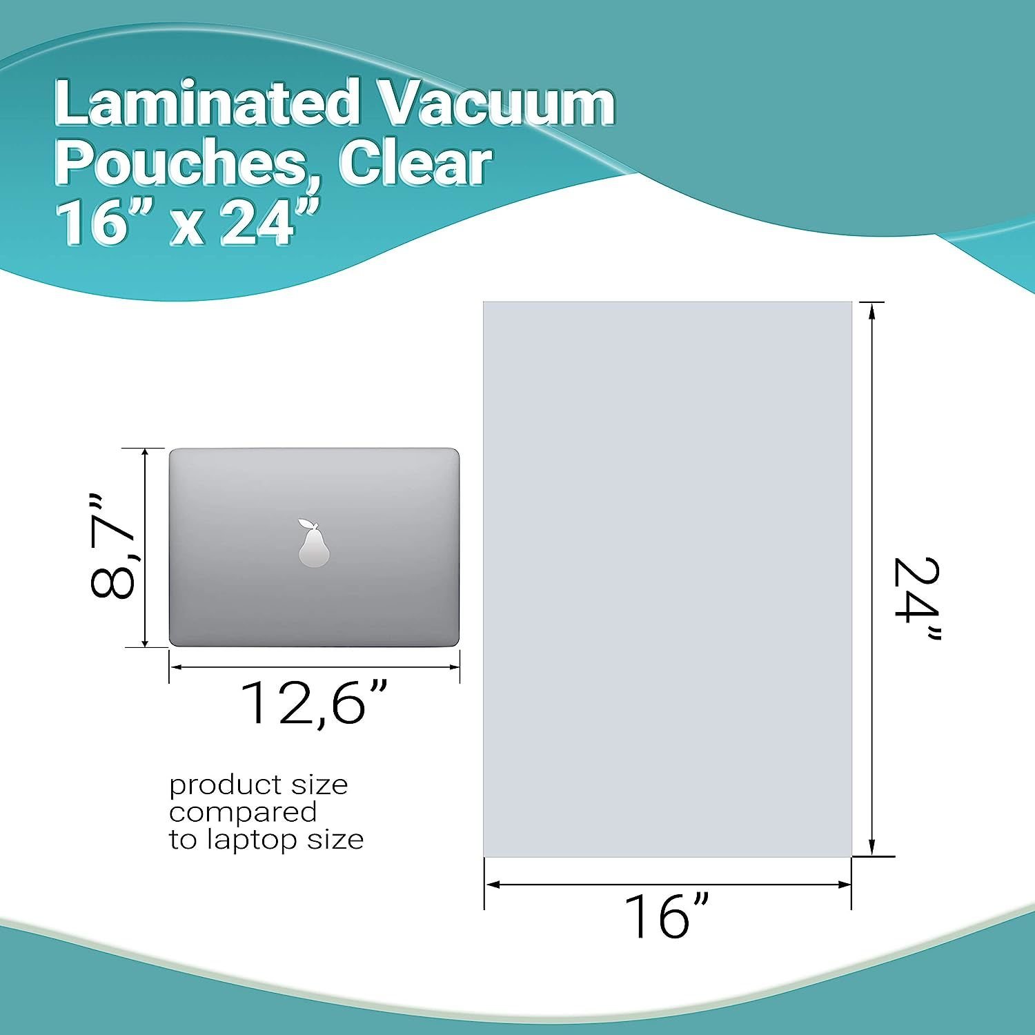 Home > Pack of 500 Laminated Vacuum Pouches; Clear 16 x 22. Poly-Nylon Vacuum Food Bags 16x22. Thickness 3 mil Thick. Plastic Bags for Packing and Storing. P