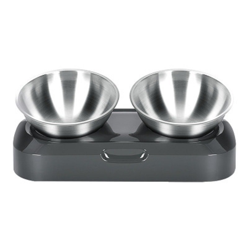 Pet Feeder Stainless Steel Double Bowls 15 Degree Adjustable Pet Cat Feeding Bowl
