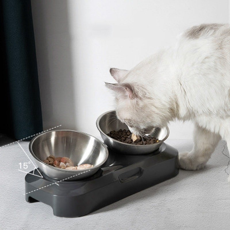 Home > Pet Feeder Stainless Steel Double Bowls 15 Degree Adjustable Pet Cat Feeding Bowl