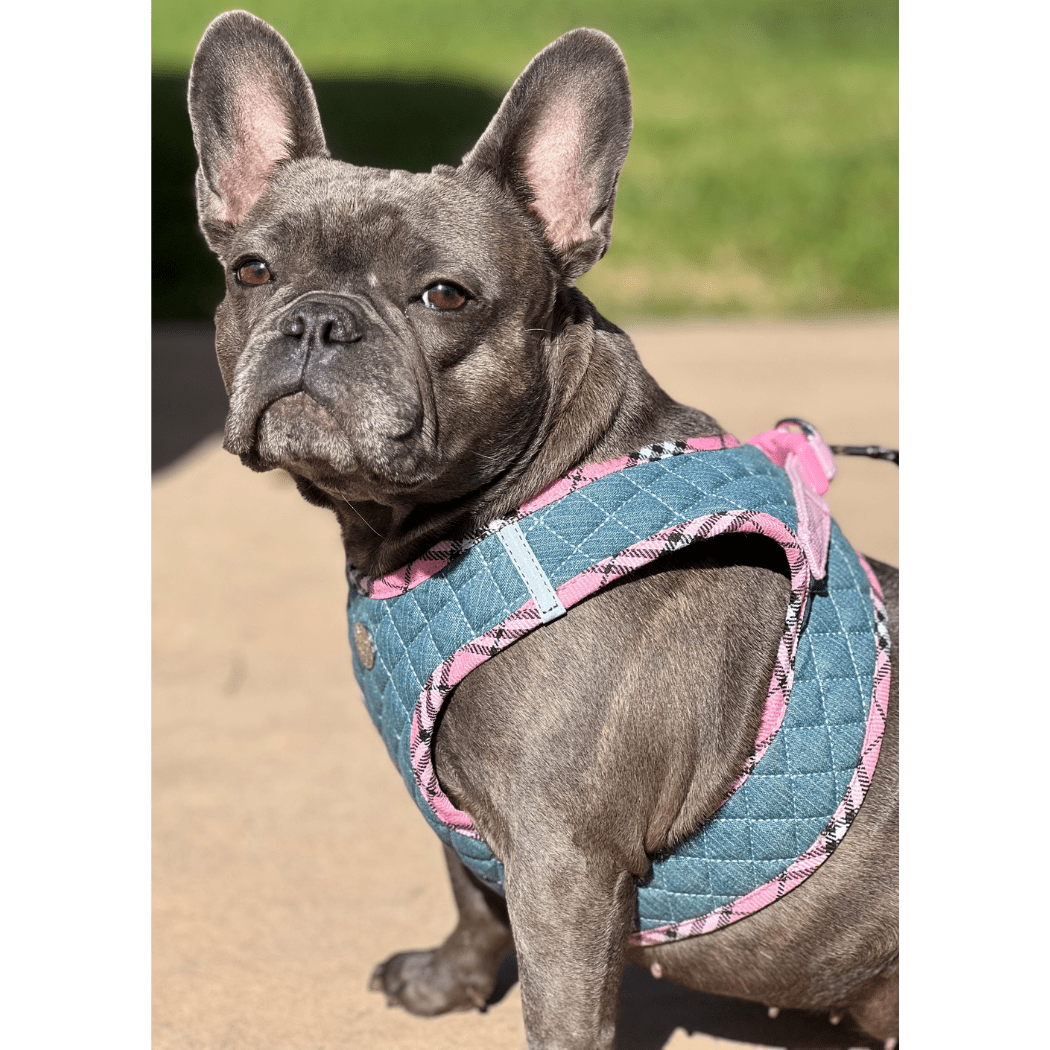 Step-In Denim Dog Harness - Pink Plaid