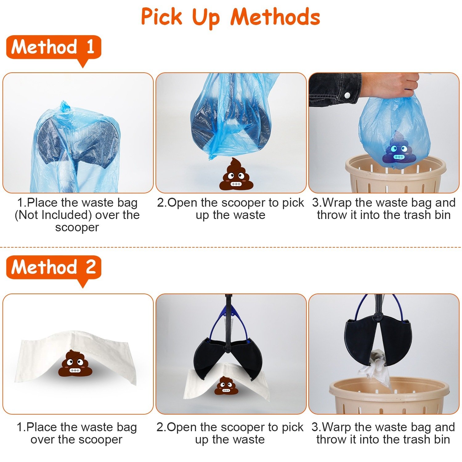 *Easy Operation*:Simply unfold and slide to lock the pooper scooper; quickly and easily. Then just pull the handle to pick up the waste of your lovely pet with only one hand needed. Perfect for dog walks; cleaning up your backyard; or when traveling!