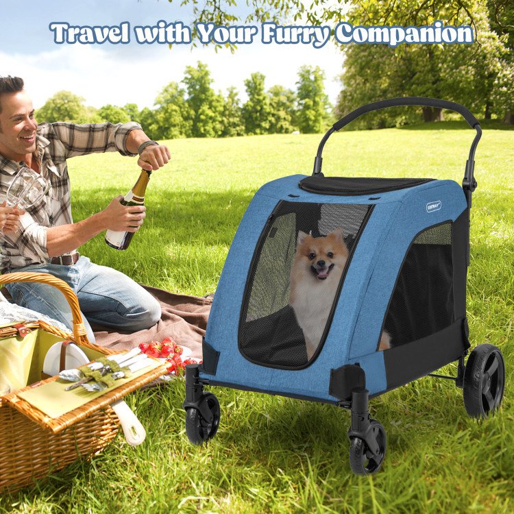 4 Wheels Extra Large Dog Stroller Foldable Pet Stroller with Dual Entry