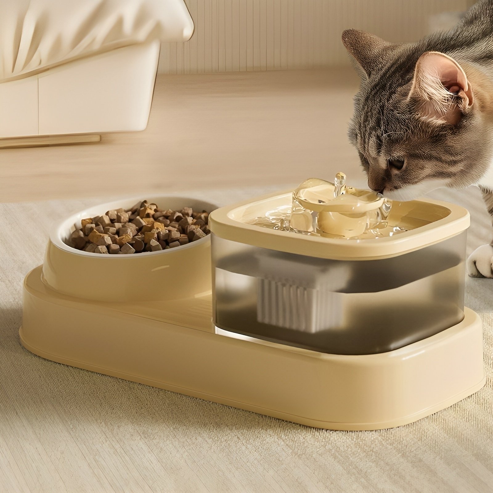 Cat Water Dispenser and Feeding Bowl 2-in-1
